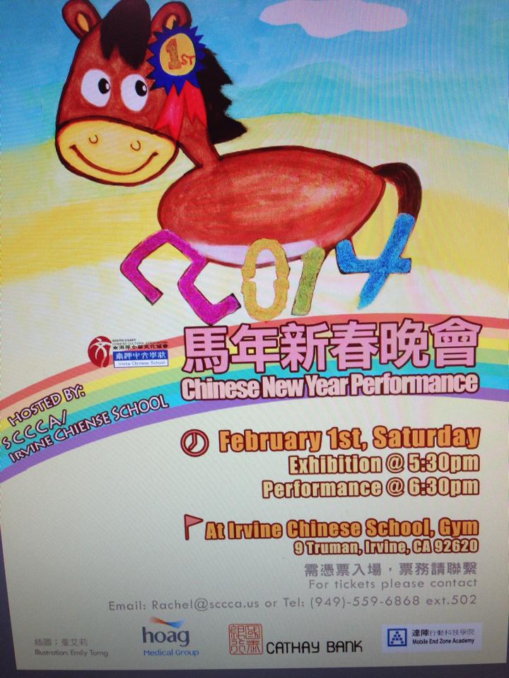 I will also be celebrating the Year of the Horse at the “Chinese New Year Exhibition and Performance” at the Irvine Chinese School, located at 9 Truman, Irvine, 92620, on Saturday, February 1, 2014, at 5:30 and 6:30 PM.