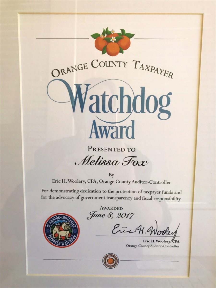 Published June 9, 2017 at 3024 × 4032 in Irvine Councilmember Melissa Fox Receives OC Taxpayer Watchdog Award for Fiscal Responsibility!