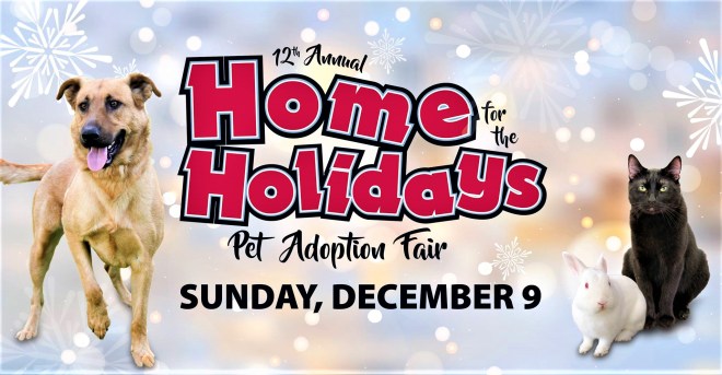 The Home for the Holidays Pet Adoption Event also features dozens of vendors, gourmet food trucks, a silent auction, low-cost microchipping and an opportunity drawing.