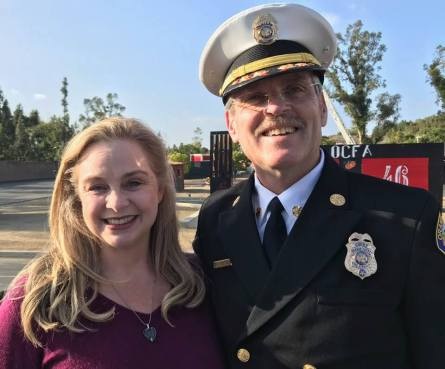 Irvine City Councilmember Melissa Fox with OCFA Fire Chief Brian Fennessy.