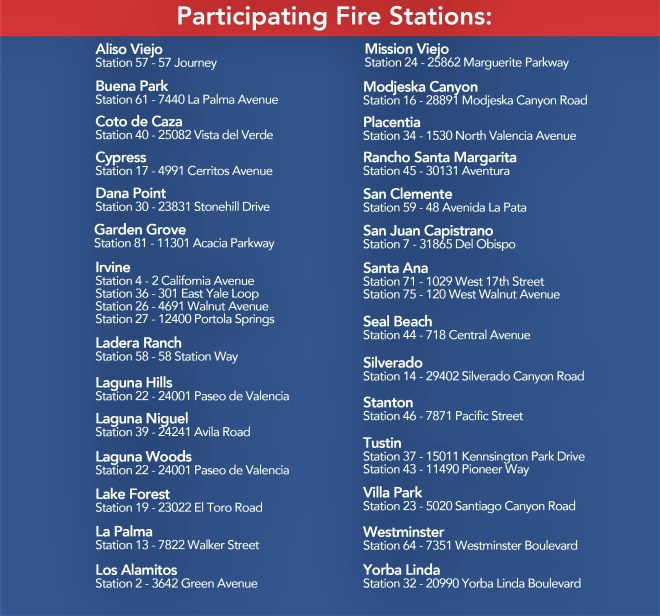 Here’s the list of participating OCFA Fire Stations: