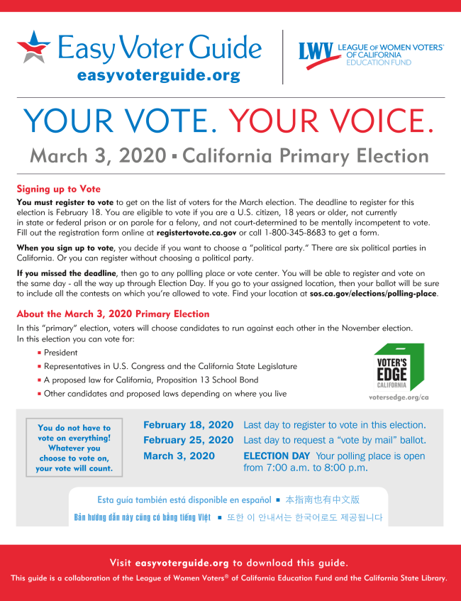 Be sure to make your voice heard by voting in the March 3, 2020 Primary Election!