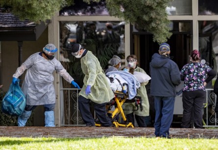 The Los Angeles Times further explained that “Dotting the state are nursing homes where the deadly contagion has taken hold. In San Bernardino County, at least 25 people have died, about half of them residents of nursing homes and assisted living facilities. At least 94 confirmed cases came from a single facility in Yucaipa where 10 residents have died. Four people have died and 38 others have tested positive for the virus at the Kensington assisted living facility in Redondo Beach. More outbreaks have been reported in Orinda, San Jose, Burlingame and San Francisco. At a care center in Hayward, 49 staffers and residents tested positive.”