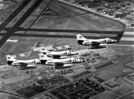 Marine Corps A4 Skyhawks in flight over El Toro, 1961