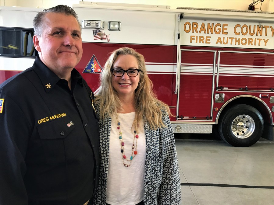 Irvine City Councilmember Melissa Fox with OCFA Fire Chief Brian Fennessy.