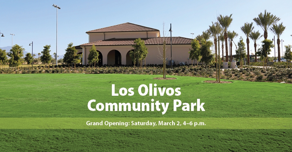 Join me at the Grand Opening and Dedication Ceremony of Portola Springs Community Park and Center on Saturday, January 26, 2019, from 4:00 p.m. – 6:00 p.m.